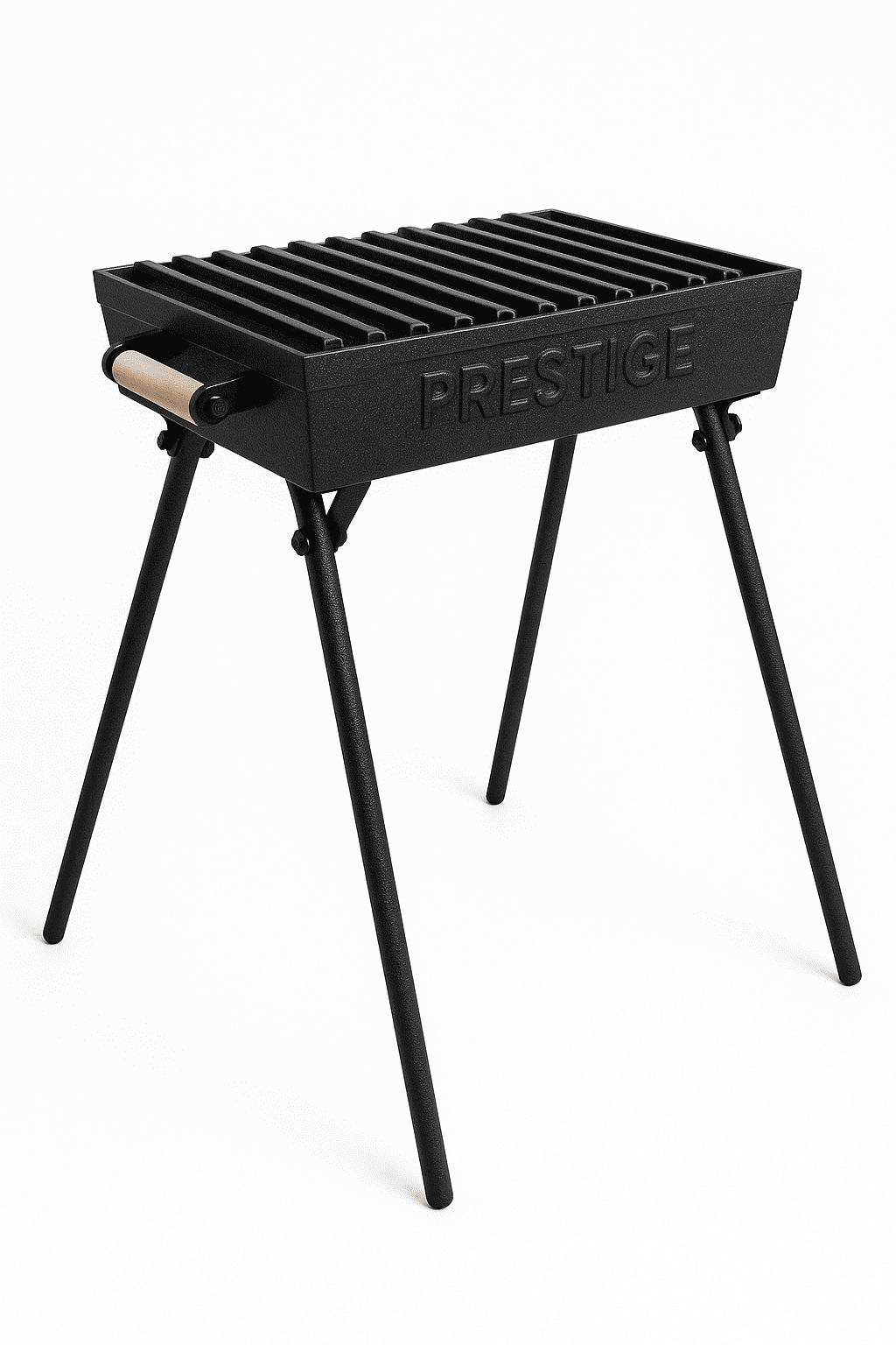Barbecue PM sur pied démontable – Format compact 40×26 cm, hauteur 60 cm, coloris noir, idéal pour les grillades en extérieur. Modèle sans chapeau, facile à monter/démonter.